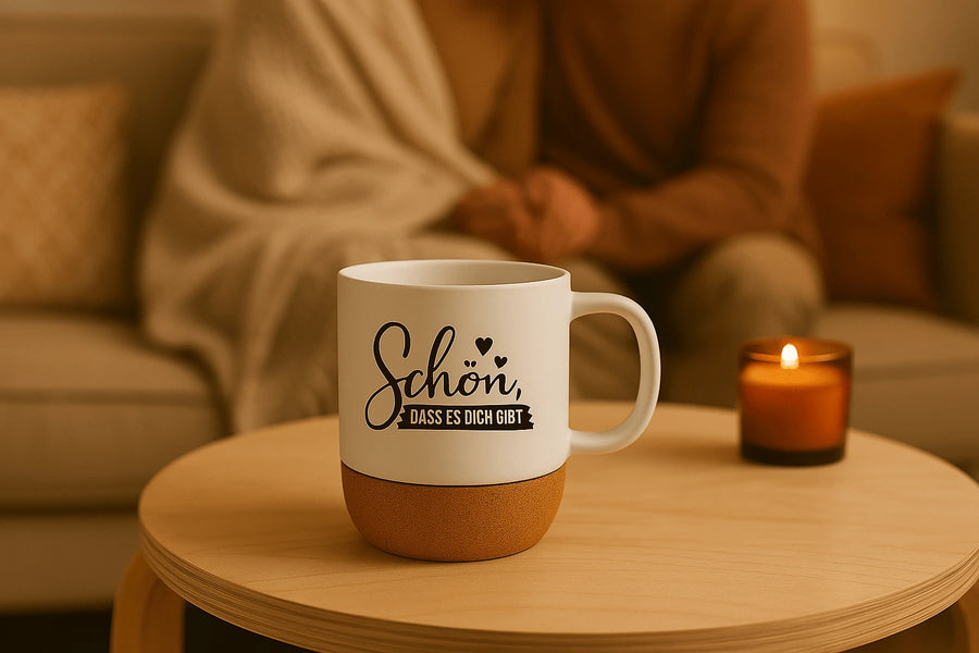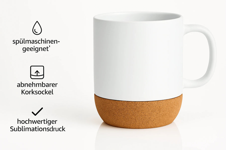 Bitte beachte: Der Korksockel und der Deckel sollten vor dem Spülen entfernt und nicht in der Spülmaschine oder Mikrowelle verwendet werden. So bleibt deine Tasse dauerhaft schön – und bereit für viele gemütliche Momente.